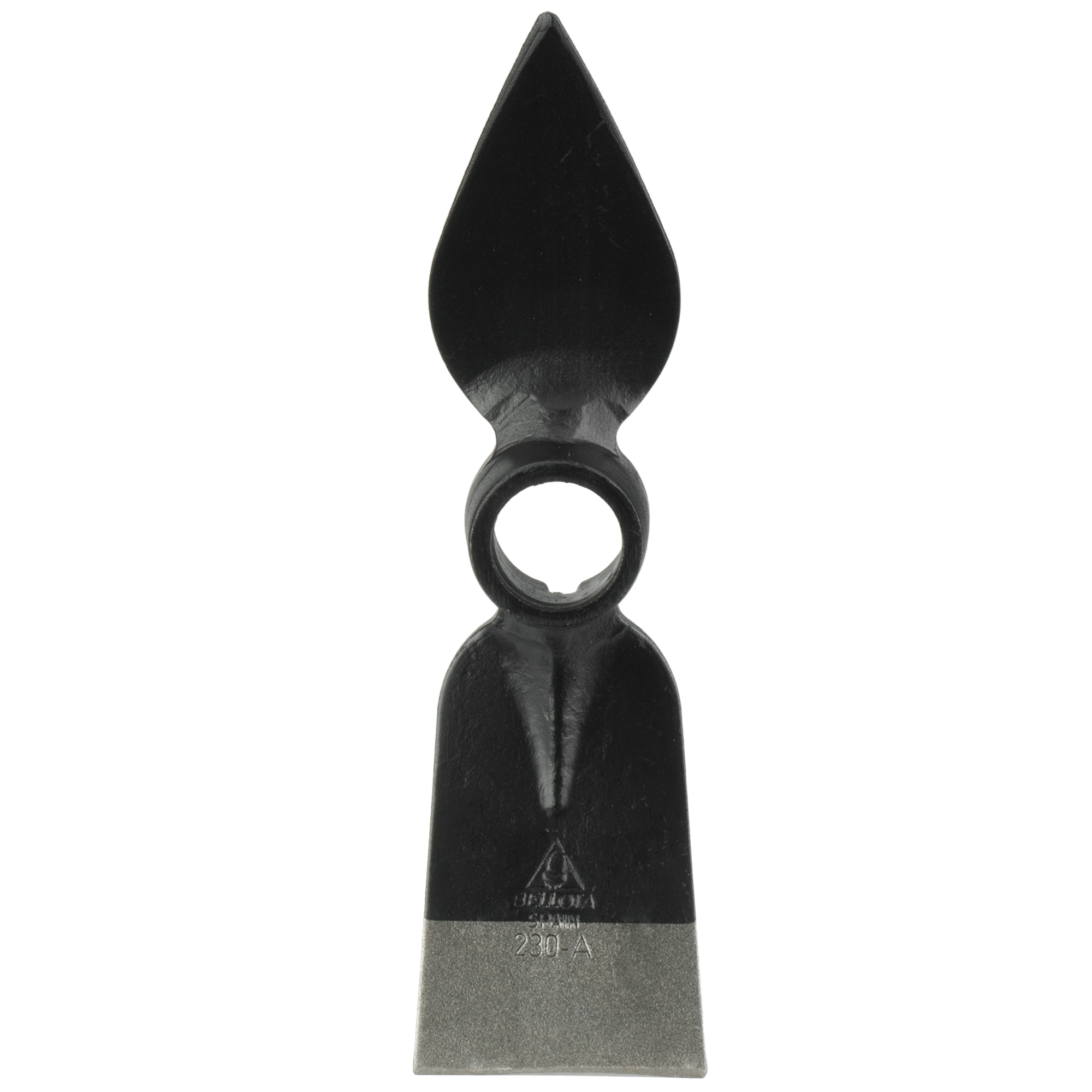 Azada forjada en una sola pieza, templada integralmente para evitar roturas y deformaciones. Están pulidas y afiladas especialmente por la zona trasera para asegurar una mejor inserción en la tierra. Incorpora el sistema antigiro en el ojo mediante unas hendiduras que bloquean el giro de la cabeza. Combinada con el mango antigiro, la azada ni se gira, ni se afloja y la unión perfecta dura más. Azada de doble figura: azada con filo cóncavo para remover la tierra y lanza para romper la costra. Especial para jardinería.