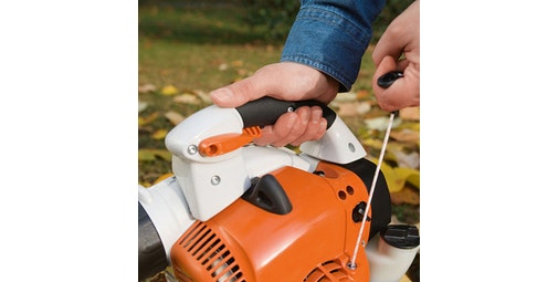 Bomba de combustibleGracias a la bomba manual de combustible del Soplador de hojas gasolina STIHL BG 56 se puede reducir el número de tirones de la cuerda de arranque un 40%, consiguiendo esto tan sólo activándose varias veces antes de comenzar.