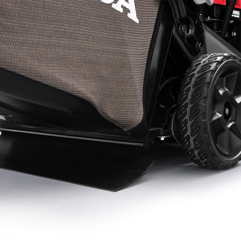 Su diseño atractivo pero funcional permite un fácil cuidado y mantenimiento, y su saco de tela de gran capacidad permite segar más metros cuadrados sin interrupciones. La parte frontal cuenta con una protección de material polimérico que además de darle un aspecto excepcional tiene la función de absorber los posibles impactos, evitando el deterioro del chasis.