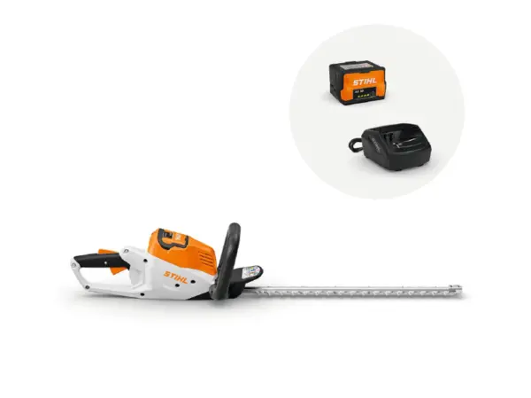 Con el cortasetos a batería HSA 50, tienes a tu disposición un todoterreno para el podar setos en el cuidado del jardín. El cortasetos a batería HSA 50 se suministra en este conjunto de serie con una batería de iones de litio STIHL AK 10 y un cargador estándar STIHL AL 101. De esta manera, puedes comenzar directamente y recortar eficientemente setos y arbustos medianos en áreas sensibles al ruido o cuidar de los bojes.