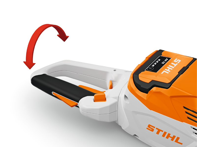 El sistema antiatrapamiento se puede poner en marcha simplemente pulsando el interruptor principal si las ramitas rebeldes quedan atrapadas en las cuchillas de corte. Al cambiar el sentido de giro, las cuchillas de corte vuelven a funcionar libremente. Para proteger tus músculos y articulaciones, el Sistema Antivibración STIHL reduce las vibraciones que se producen en las empuñaduras. De este modo, podrás trabajar cómodamente incluso cuando utilices la máquina durante periodos prolongados.