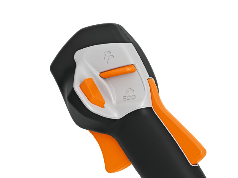 Gracias al motor EC sin escobillas puedes ajustar la velocidad en dos niveles directamente en la empuñadura de control. Si deseas trabajar a velocidades más bajas, por ejemplo para recortar los bordes del césped, el modo ECO (nivel 1) te proporciona un menor consumo de energía y puedes así prolongar la vida útil de la batería. Si necesitas toda la velocidad de la STIHL FSA 80 para cortar matorrales y hierba densa, simplemente cambias a la velocidad 2 mediante el interruptor deslizante. La velocidad se ajusta automáticamente a la herramienta de corte acoplada y puede regularse continuamente.