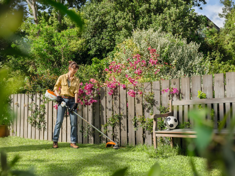 DESBROZADORA FSA 80 R CON BATERÍA AK 30 Y CARGADOR ESTÁNDAR AL 101: PARA UNA SIEGA SILENCIOSA Y EFICAZ EN EL JARDÍN DOMÉSTICO, INCLUSO EN ESPACIOS REDUCIDOS