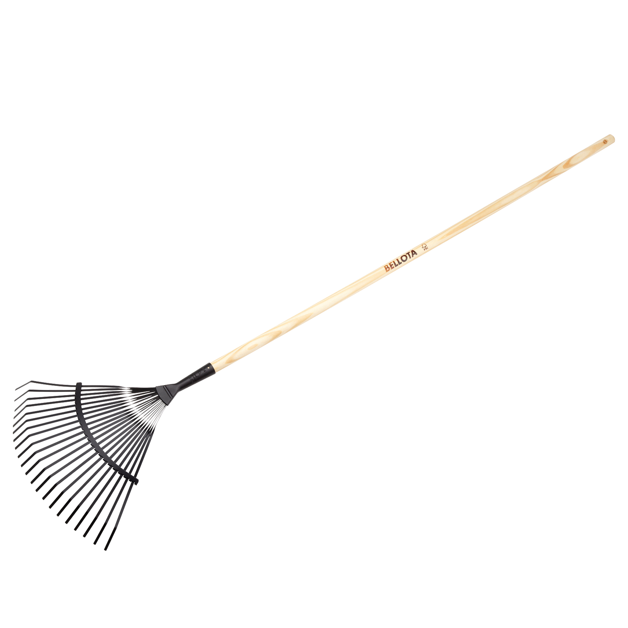 Escoba de jardín, con mango de madera FSC, con púas planas de acero resistente para limpieza del césped.