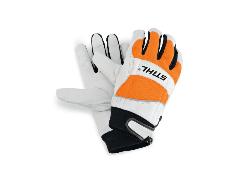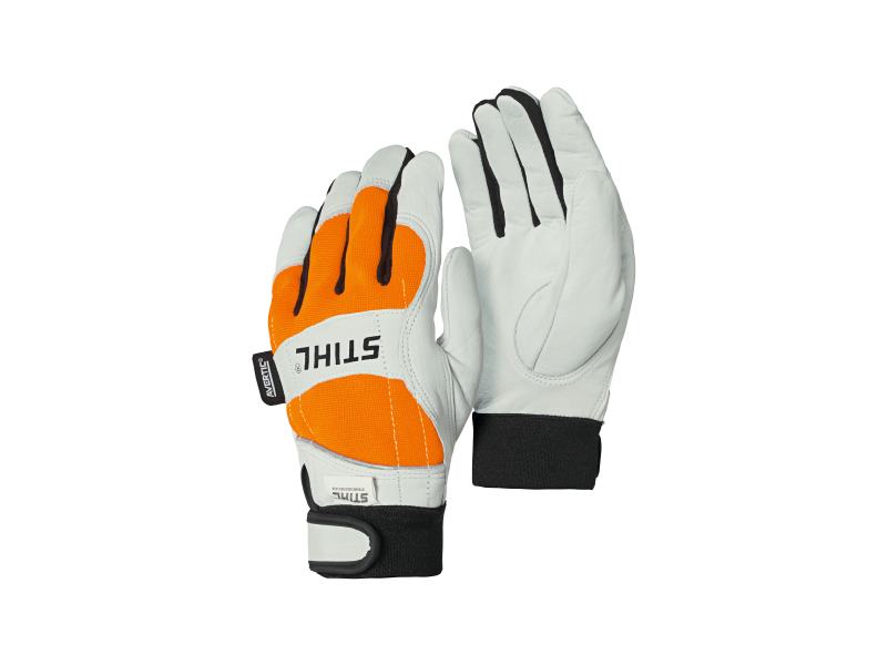 Cómodos guantes con protección anticorte en ambos dorsos de la mano, ideal para trabajos de poda. Combinación de cuero y tela. Puño elástico. Tallas S, M, L, XL y XXL.