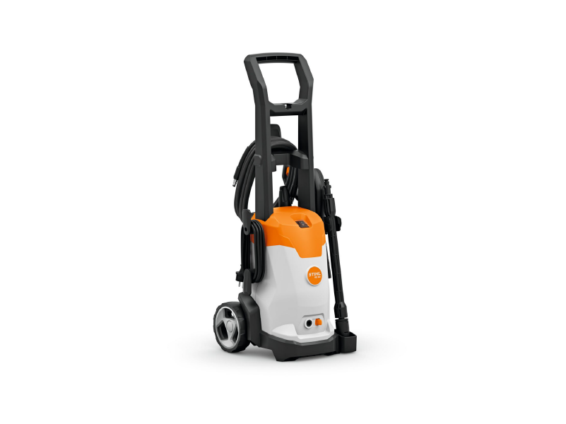 Con la hidrolimpiadora RE 90 de STIHL, los usuarios particulares pueden limpiar eficazmente terrazas, escaleras o incluso jardines medianos. Los accesorios estándar se pueden guardar directamente en el compartimento y también hay un gancho para guardar el cable de red y la manguera de alta presión. Una robusta y larga empuñadura y ruedas de transporte integradas apoyan el cómodo transporte del STIHL RE 90 al siguiente lugar de uso.