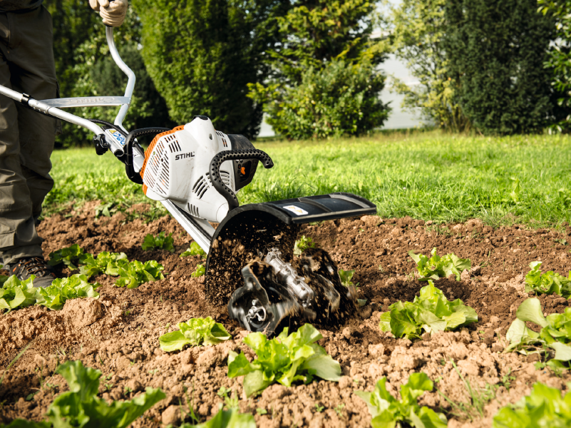 Fácil de llevar y transportarEl Multisistema STIHL se pliega fácilmente, incluso con la herramienta montada. Ideal para un transporte cómodo. (Ver imagen)