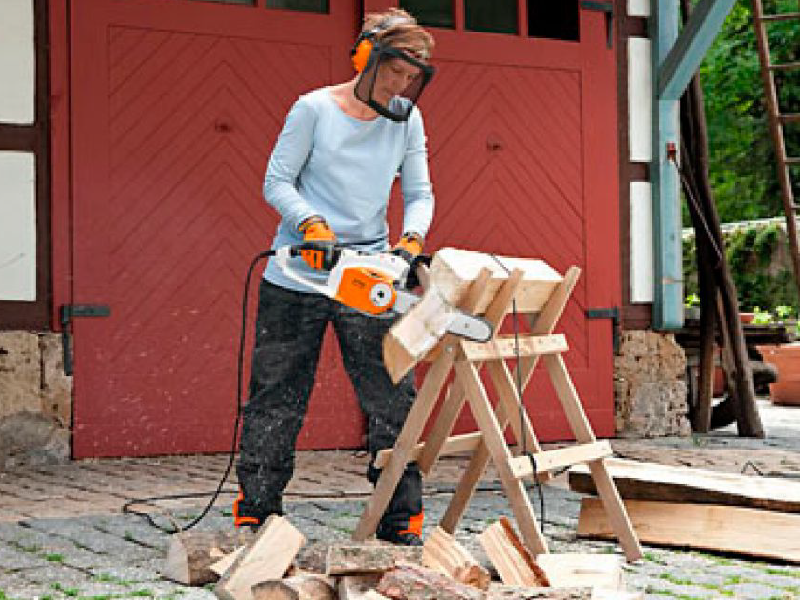 Corte de precisión: el tope de garras fija la motosierra a la madera y facilita el guiado exacto del corte.