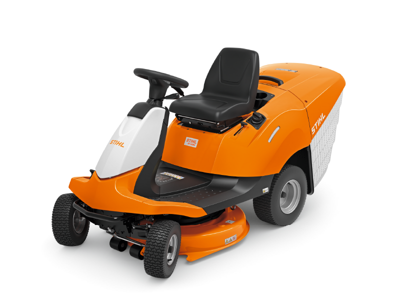 Tractor cortacésped RT 4082 con un buen ángulo de giro, perfecto para sortear árboles en el jardín