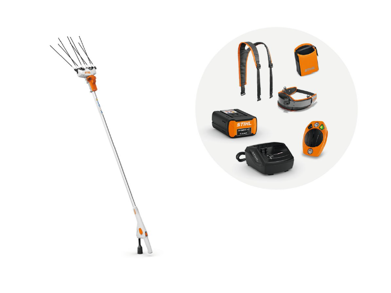 El vareador SPA 130 con batería y cargador es la máquina perfecta para trabajos profesionales en la cosecha de aceitunas, almendras, nueces u otras frutas pequeñas. Los 8 dedos de carbono perfectamente alineados en el rastrillo desprenden las frutas de manera eficiente y suave, sin dañar el árbol o las ramas. Ahora disponible también con batería STIHL AP 500 S y un cargador estándar STIHL AL 101 .