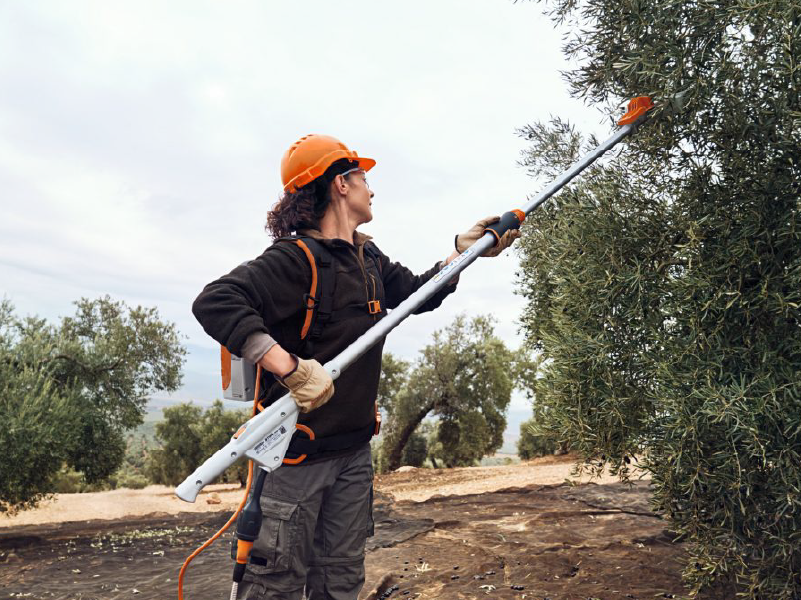 El STIHL SPA 140 es libre de emisiones y silencioso, funciona con baterías de iones de litio del sistema STIHL AP, como la batería STIHL AP 300 S, por lo que no necesita protección auditiva durante su uso. Puedes conectar la batería al recolector especial con una arnés STIHL AP con cable de conexión. El conector flexible en el SPA 140 admite una alta flexibilidad del cable. Gracias a la vara telescópica profesional rígido, podrás guiar el rastrillo con precisión entre las ramas del árbol . Para cosechar aceitunas con diferentes grados de madurez, puedess ajustar la velocidad del rastrillo en 3 niveles. Su resistente estructura, la unidad de engranajes a prueba de polvo, junto con el motor totalmente encapsulado en el STIHL SPA 140, garantizan una larga vida útil del recolector especial.
